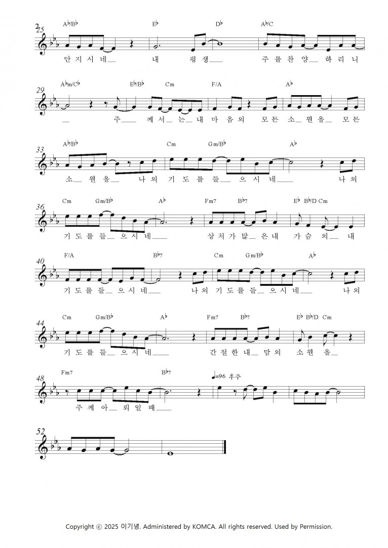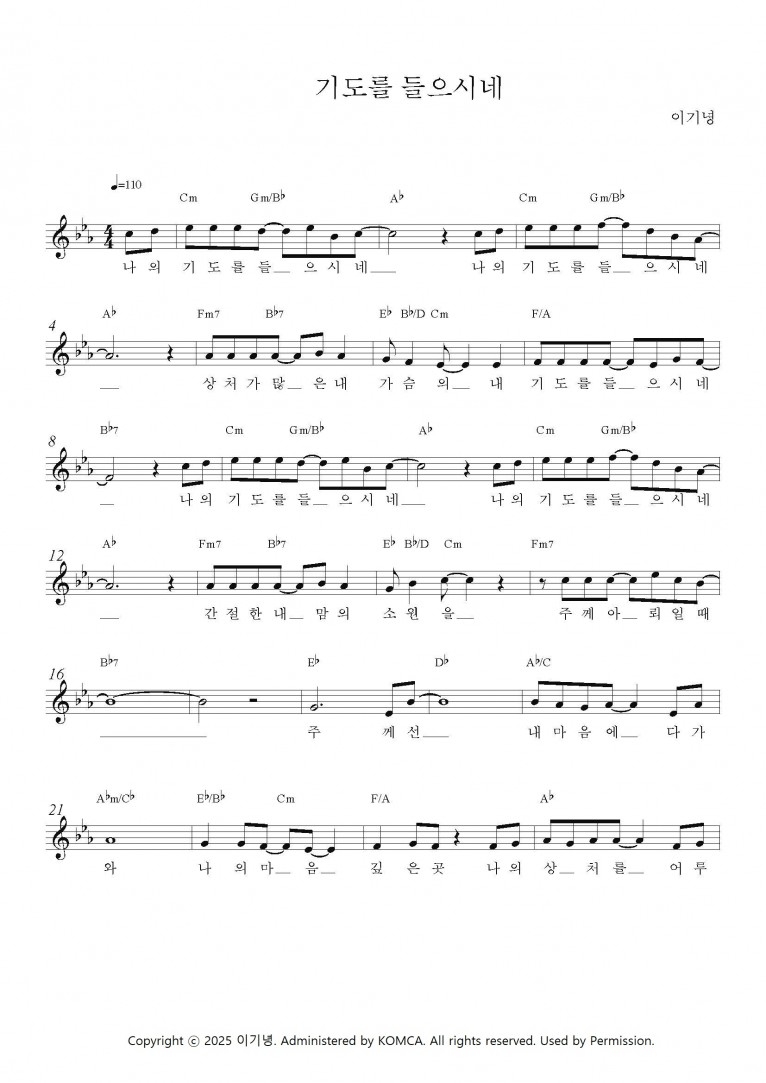 [악보] 기도를 들으시네 - 창조의 목적 (잠잠히 주를 바랄 때)