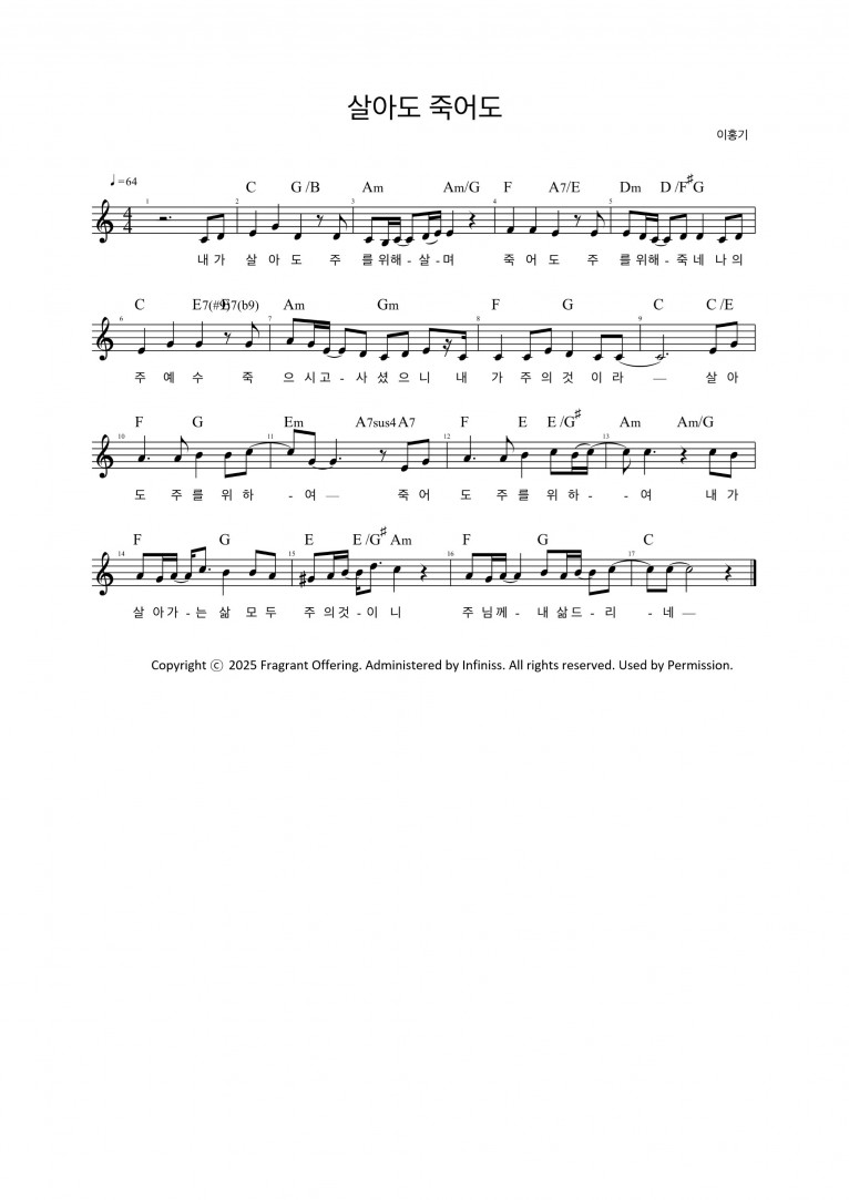 [MV,악보] 살아도 죽어도 - 향기로운 제물