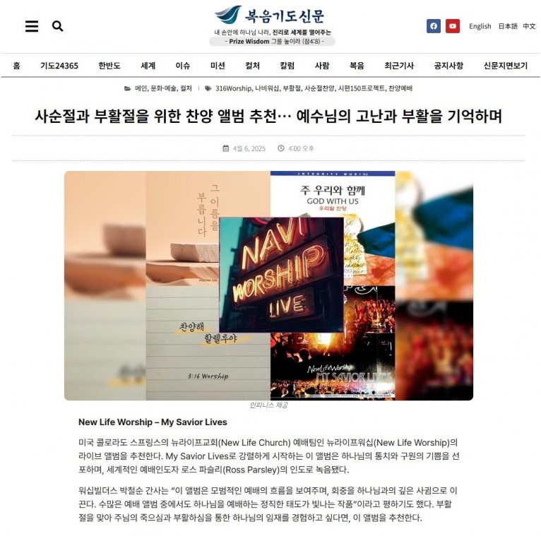 [기획기사] 사순절과 부활절을 위한 찬양 앨범 추천… 예수님의 고난과 부활을 기억하며(복음기도신문)