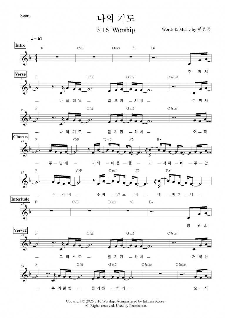 뮤직타임 [MV,악보] 나의 기도 - 3:16 Worship (Sanctification)