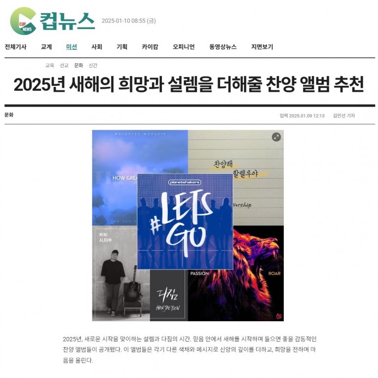 뮤직타임 [기획기사] 2025년 새해의 희망과 설렘을 더해줄 찬양 앨범 추천(크리스챤연합신문)