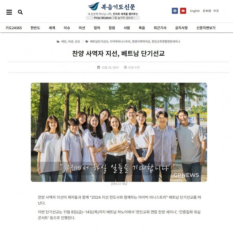 뮤직타임 [기사] 찬양 사역자 지선, 베트남 단기선교(복음기도신문)