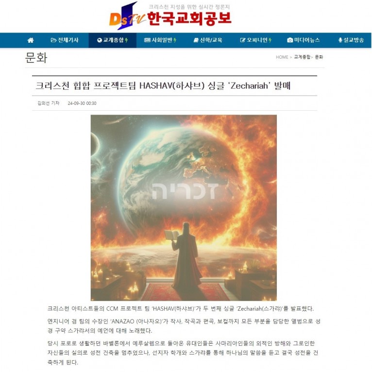 뮤직타임 [기사] 크리스천 힙합 프로젝트팀 HASHAV(하샤브) 싱글 ‘Zechariah’ 발매(한국교회공보)