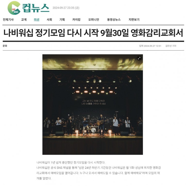 뮤직타임 [기사] 나비워십 정기모임 다시 시작 9월30일 영화감리교회서(크리스챤연합신문)