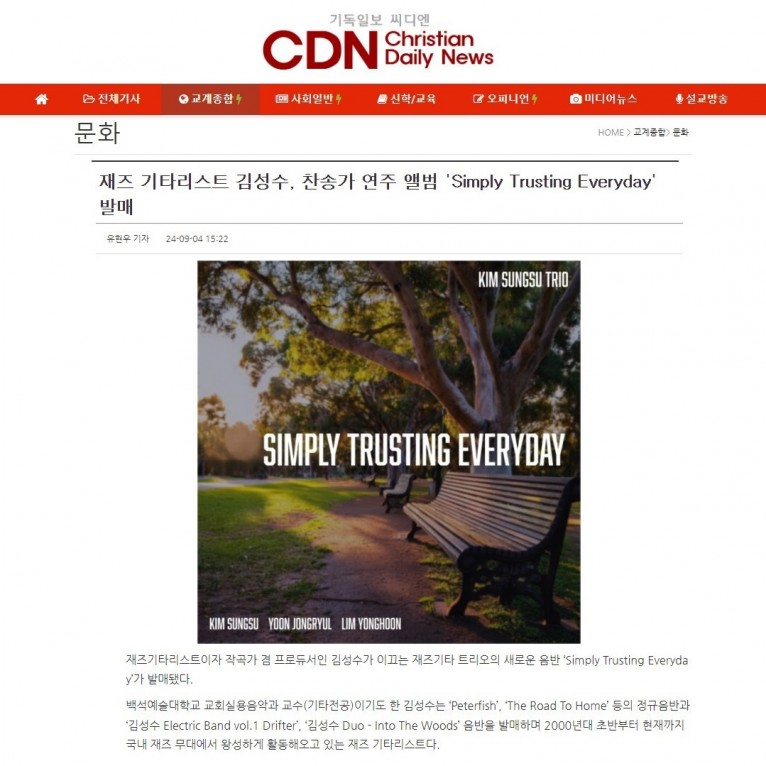 [기사] 재즈 기타리스트 김성수, 찬송가 연주 앨범 'Simply Trusting Everyday' 발매(기독일보 씨디엔)