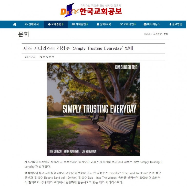 뮤직타임 [기사] 재즈 기타리스트 김성수 'Simply Trusting Everyday' 발매(한국교회공보)
