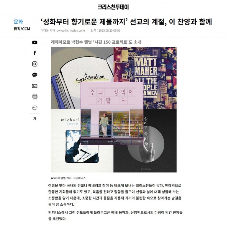 인피니스에서 그런 성도들에게 들려주고픈 예배 음악과, 신앙인으로서의 다짐이 담긴 찬양들을 추천했다. 다음은 앨범 소개.