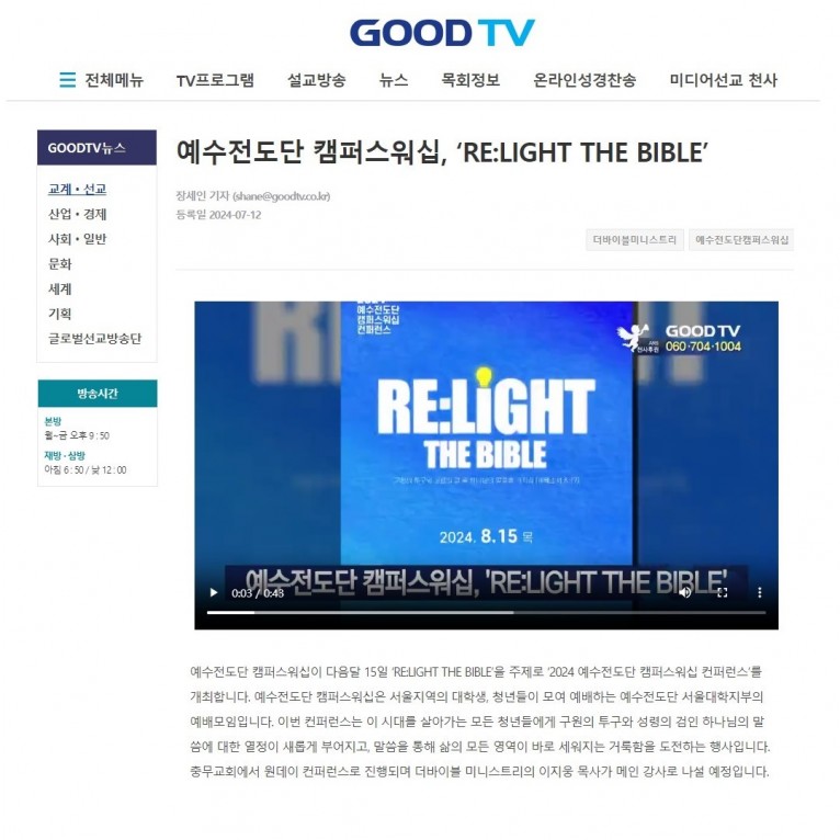 [보도] 예수전도단 캠퍼스워십, ‘RE_LIGHT THE BIBLE’(기독교복음방송 GOODTV)