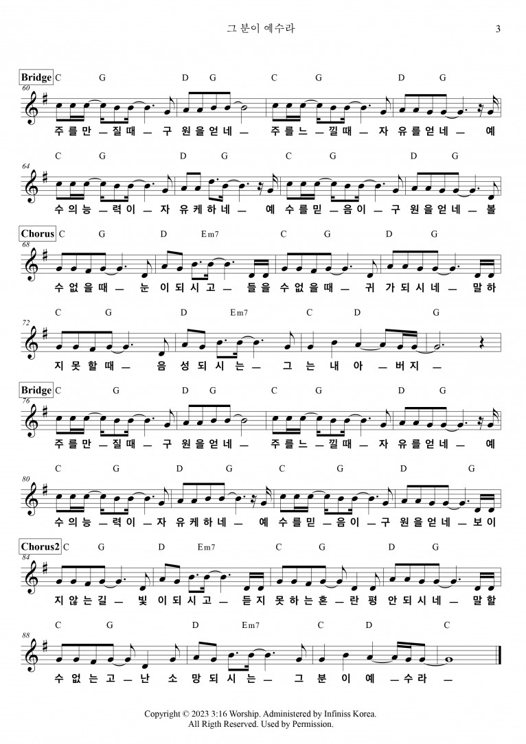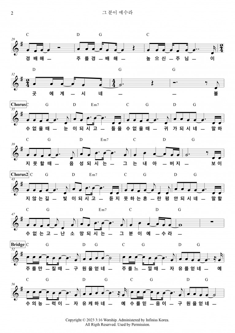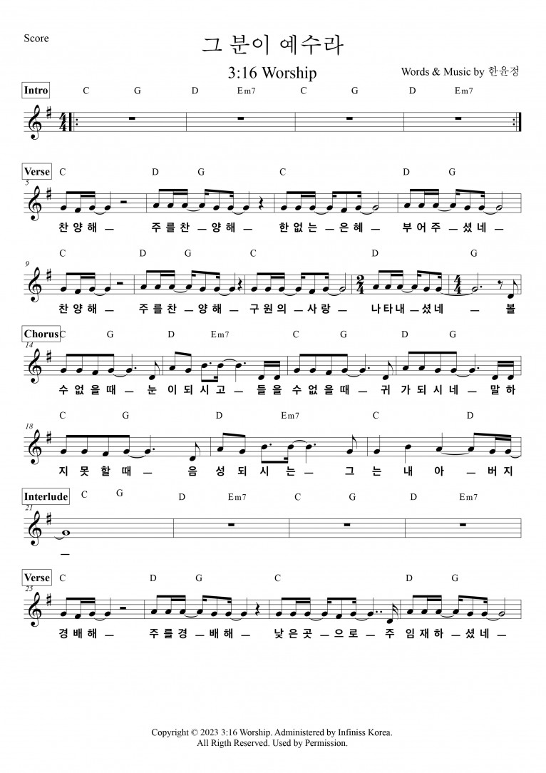 뮤직타임 [악보 & MV] 그분이 예수라 - 3:16 Worship