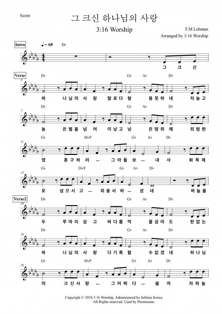 뮤직타임 [악보 & MV] 그 크신 하나님의 사랑 - 3:16 Worship