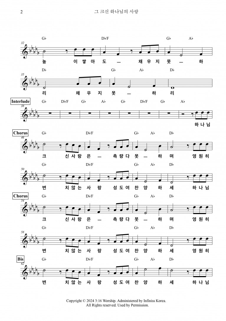 악보출처 https://shorter.me/5wRsm (3:16 Worship 구글 드라이브)