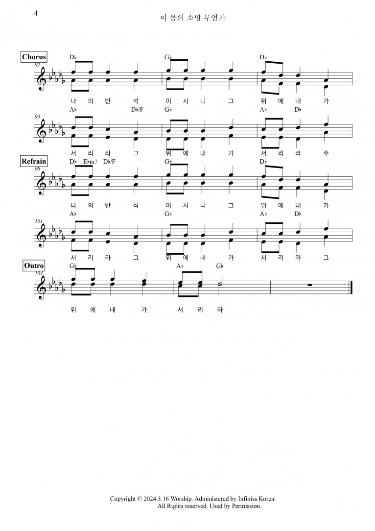 악보출처 https://shorter.me/5wRsm (3:16 Worship 구글 드라이브)
