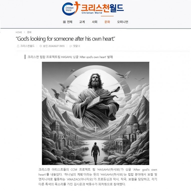 [기사] 크리스천 힙합 프로젝트팀 HASHAV, 싱글 ‘After god's own heart’ 발매(크리스천월드)