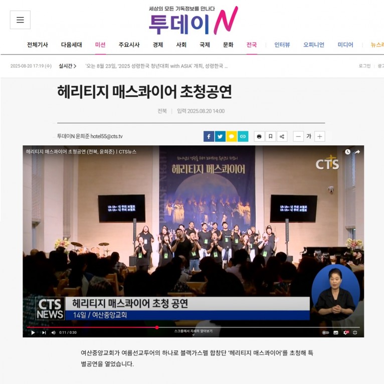 [방송] 헤리티지 매스콰이어 초청공연(CTS)