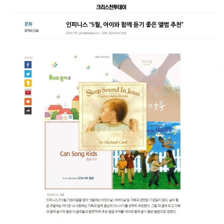 [기획기사] “5월, 아이와 함께 듣기 좋은 앨범 추천”(크리스천투데이)