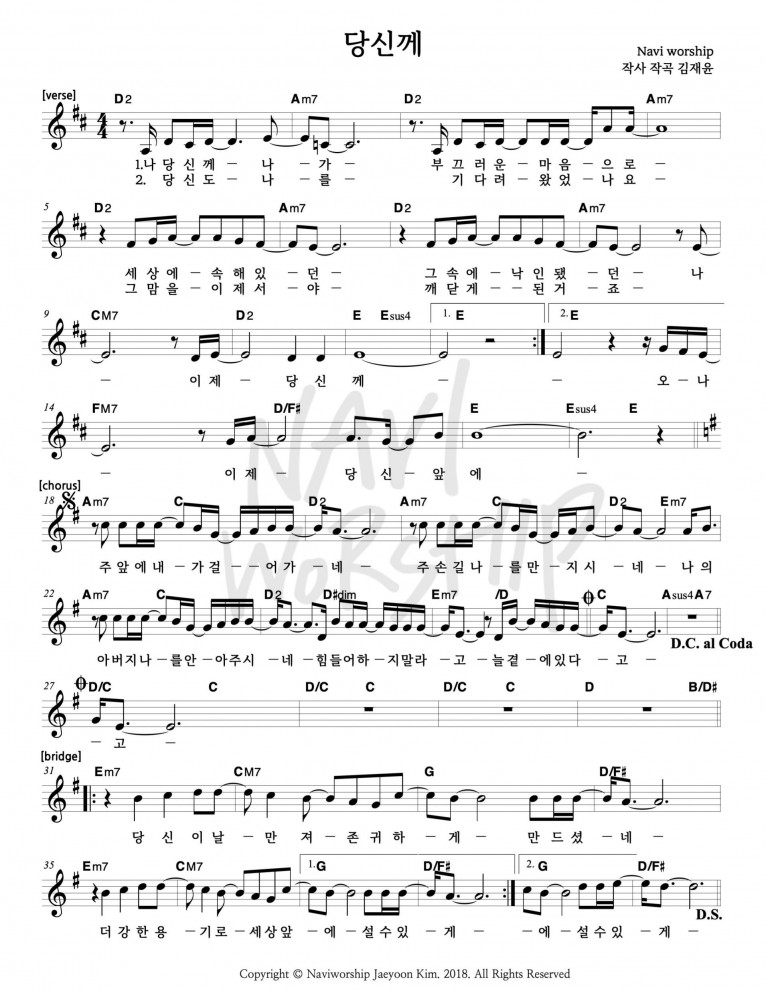 뮤직타임 [악보] 당신께 - 나비워십