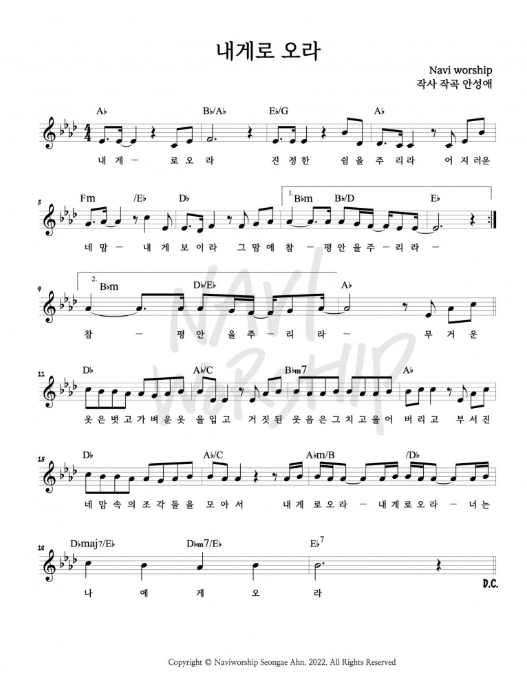 뮤직타임 [악보] 내게로 오라 - 나비워십