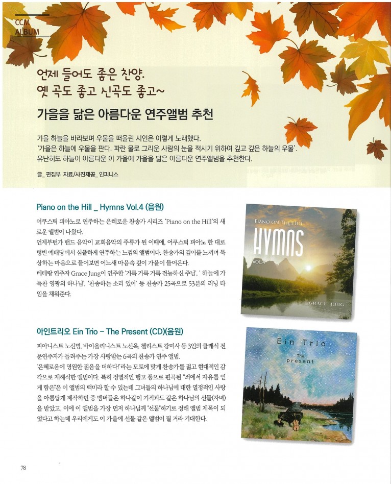 뮤직타임 [잡지] 가을을 닮은 아름다운 연주앨범 추천(월간 Church Media 10월호)