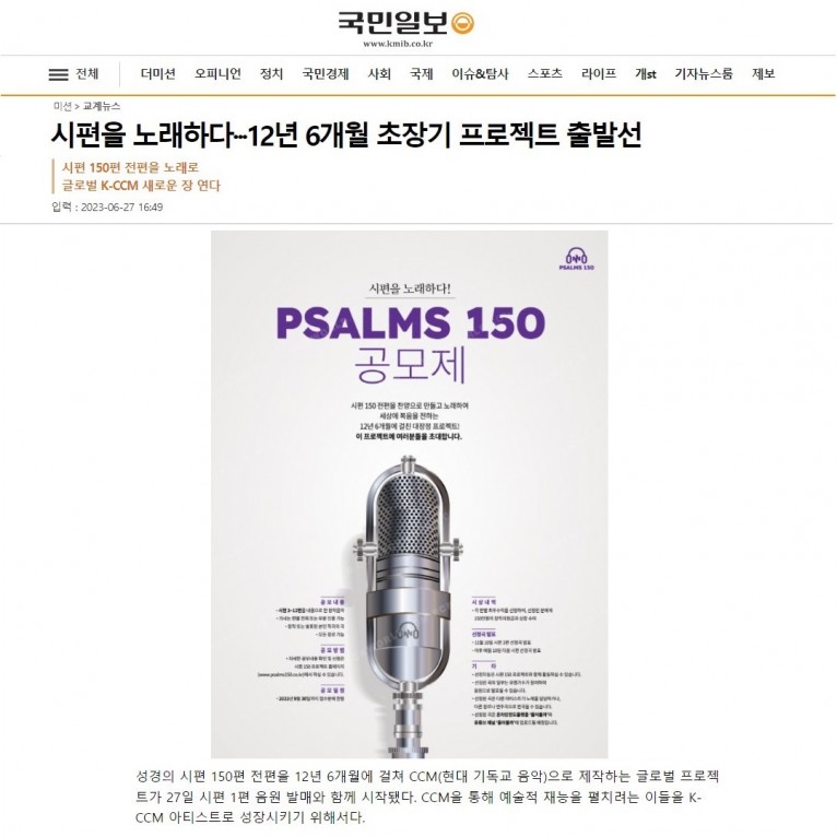[기사] 시편을 노래하다···12년 6개월 초장기 프로젝트 출발선(국민일보)