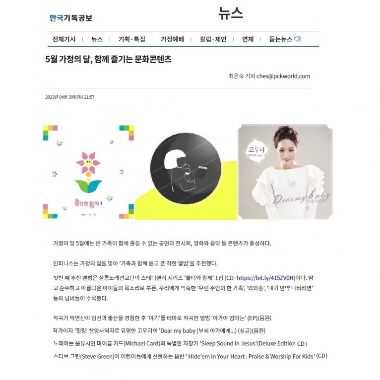 뮤직타임 [기사] 5월 가정의 달, 함께 즐기는 문화콘텐츠(한국기독공보)
