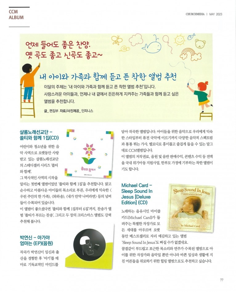 [잡지] 내 아이와 가족과 함께 듣고 픈 착한 앨범 추천(월간 Church Media 5월호)
