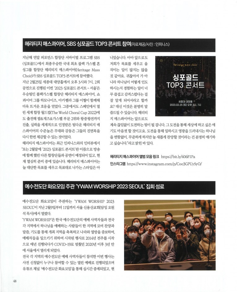 뮤직타임 [잡지] 월간 처치미디어 2023.3월 기획기사 (CCM NEWS)