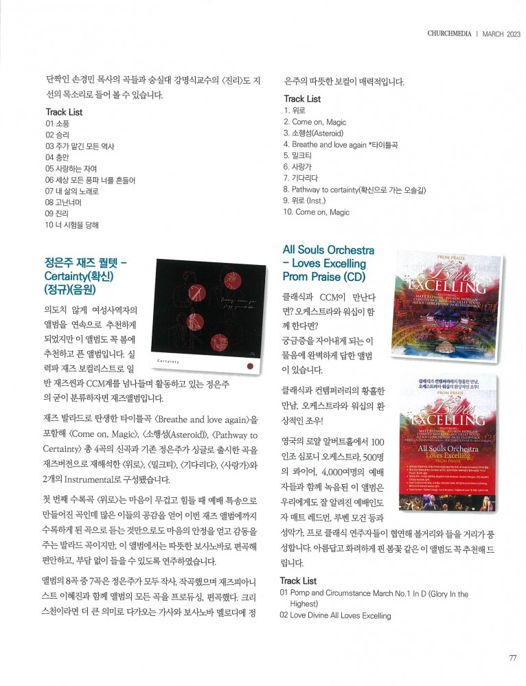 [잡지] 월간 처치미디어 2023.3월 기획기사 (CCM ALBUM)