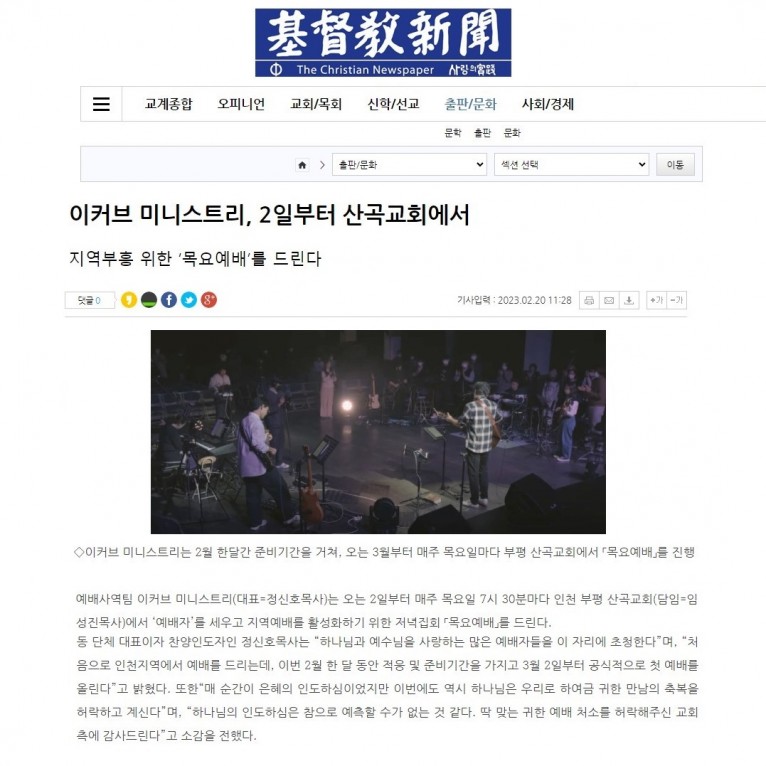 뮤직타임 [기사] 이커브 미니스트리, 2일부터 산곡교회에서(기독교신문)