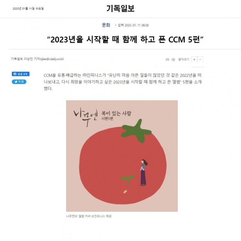 뮤직타임 [기사] 2023년을 시작할 때 함께 하고 픈 CCM 5편