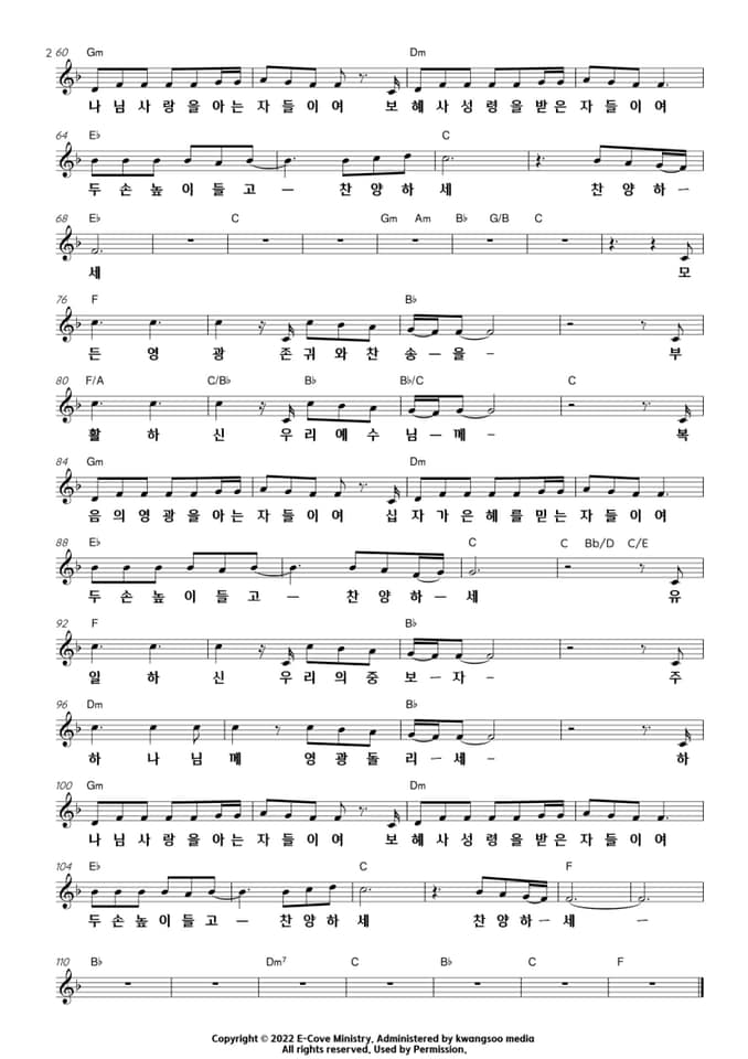 [악보] 복음의 영광을 아는 자들이여 - E-Cove Ministry (이커브미니스트리) (진정 부흥을 꿈꾸는가)