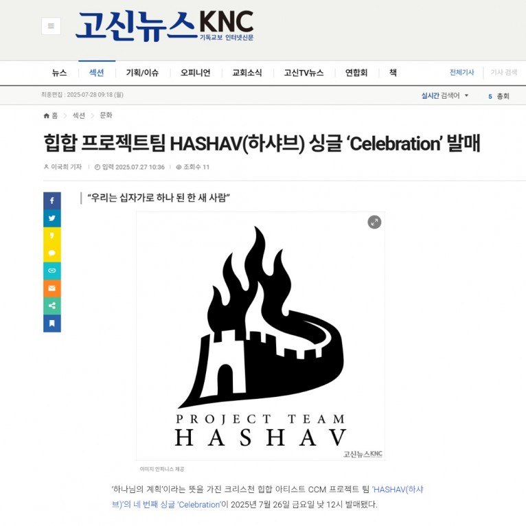 [기사] 힙합 프로젝트팀 HASHAV(하샤브) 싱글 ‘Celebration’ 발매(고신뉴스 KNC)