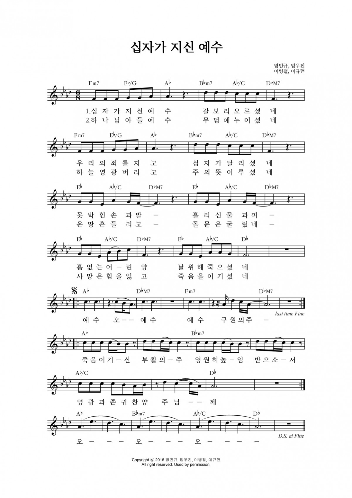 예수전도단 서울화요모임 부활절 싱글 [십자가, 예수]의 수록 곡 중 '십자가 지신 예수'의 악보를 무료로 배포합니다!