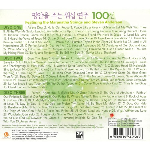 마라나타 스트링과 함께하는 아름답고 평안한 연주. 주 하나님 지으신 모든 세계 등 100곡 수록.