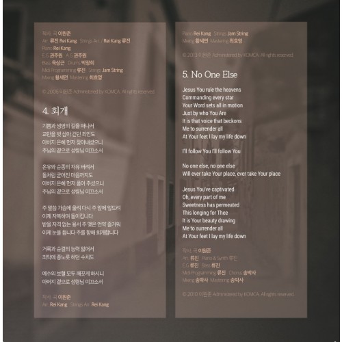 Vocal / 이원준 Arr. / Rei Kang Strings Arr. / Rei Kang Piano / Rei Kang Strings / Jam String Mixing / 황세연