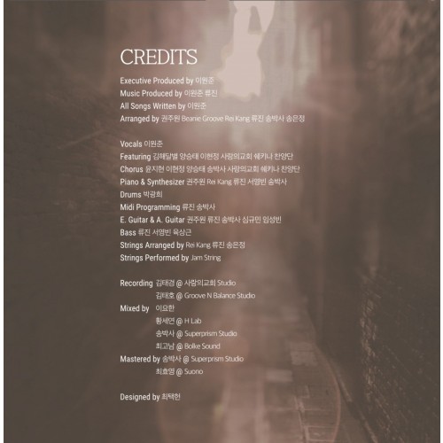 Vocal / 이원준 Arr. / 송은정 Strings Arr. / 송은정 Piano / 송은정 E.G / 심규민 A.G / 송박사 Bass / 육상근